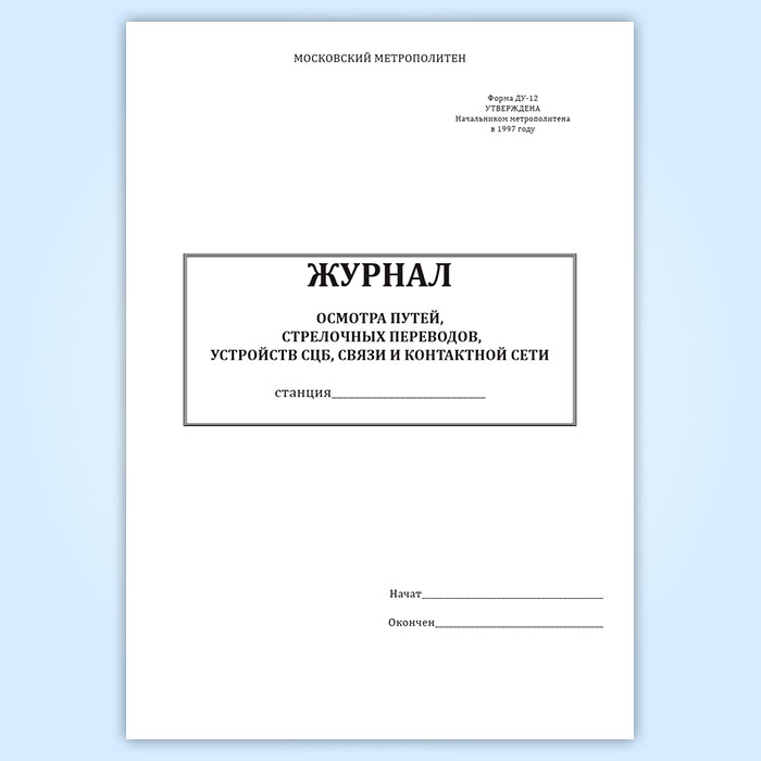 Журнал осмотра путей, стрелочных переводов, устройств СЦБ, связи и контактной сети (форма ДУ-12) в Тюмени купить