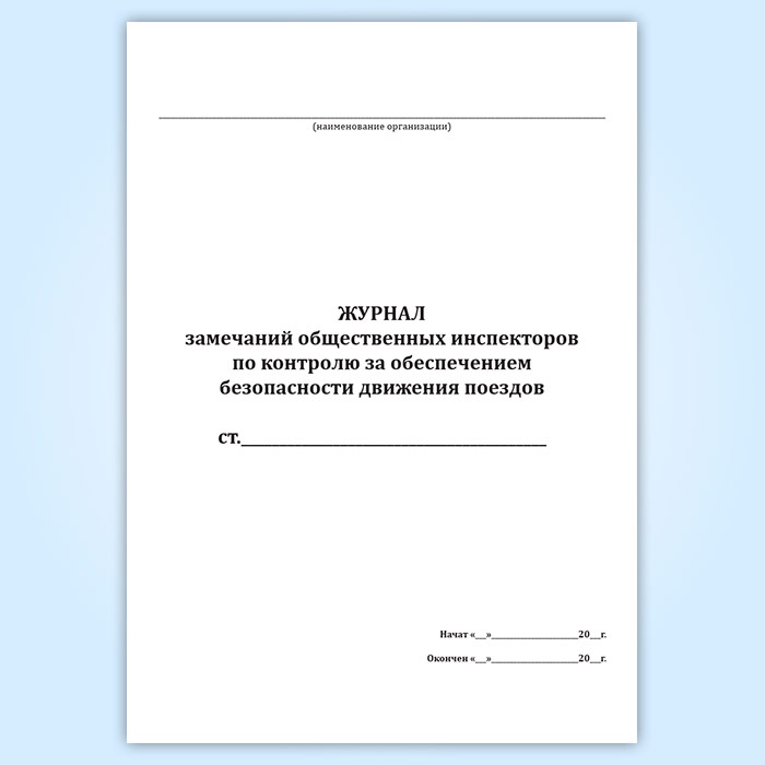 Журнал замечаний общественных инспекторов по контролю за обеспечением безопасности движения поездов в Тюмени купить