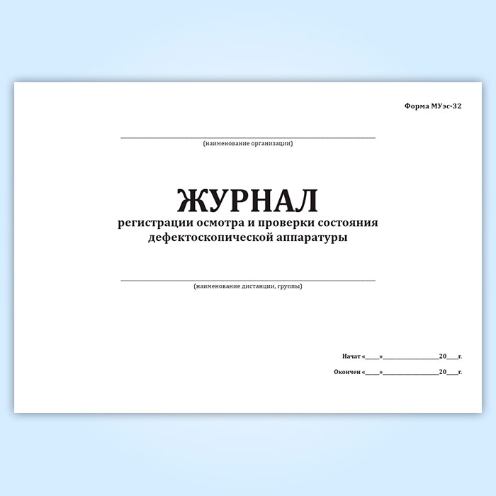 Журнал регистрации осмотра и проверки состояния дефектоскопической аппаратуры (форма МУэс-32) в Тюмени купить