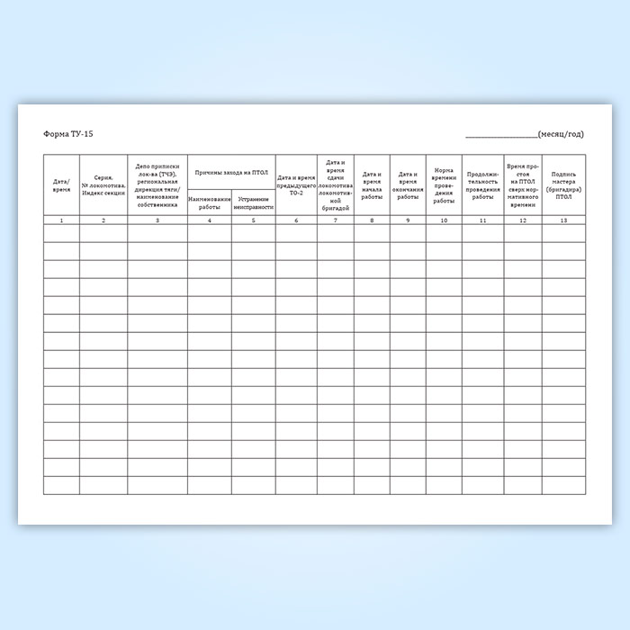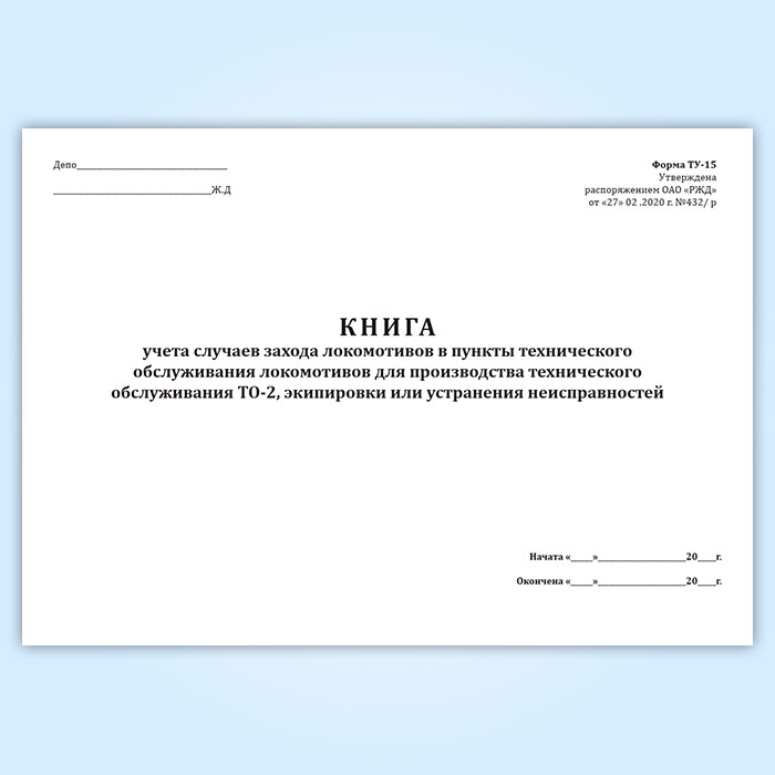Книга учета случаев захода локомотивов в пункты технического обслуживания локомотивов для производства технического обслуживания ТО-2, экипировки или устранения неисправностей (форма ТУ-15) в Тюмени купить