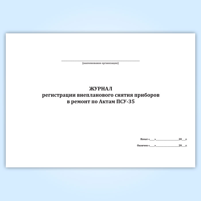 Журнал регистрации внепланового снятия приборов в ремонт по Актам ПСУ-35 в Тюмени купить