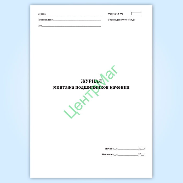 Журнал монтажа подшипников качения (форма ТУ-93) в Тюмени купить