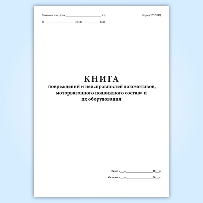 Книга повреждений и неисправностей локомотивов, моторвагонного подвижного состава и их оборудования (форма ТУ-29ВЦ) в Тюмени купить