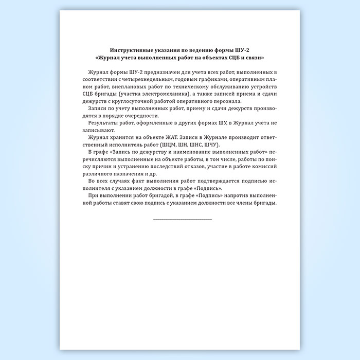 Журнал учета выполненных работ на объектах СЦБ и связи (форма Шу-2) в Тюмени купить