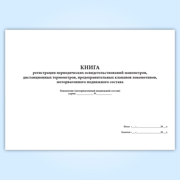 Книга регистрации периодических освидетельствований манометров, дистанционных термометров, предохранительных клапанов локомотивов, моторвагонного подвижного состава (форма ТКУ-8) в Тюмени купить