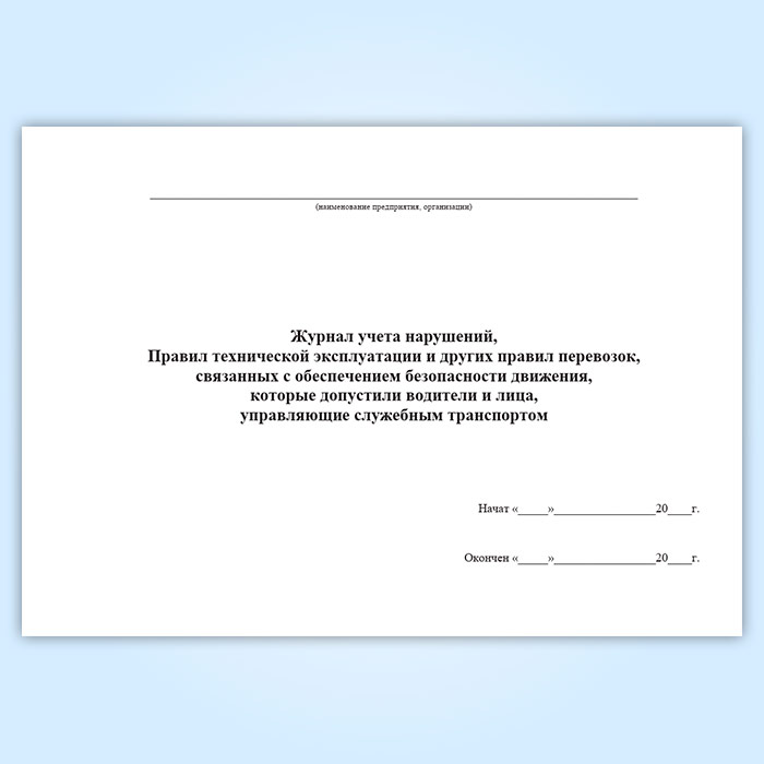 Журнал учета нарушений, правил технической эксплуатации и других правил перевозок, связанных с обеспечением безопасности движения, которые допустили водители и лица, управляющие служебным транспортом в Тюмени купить
