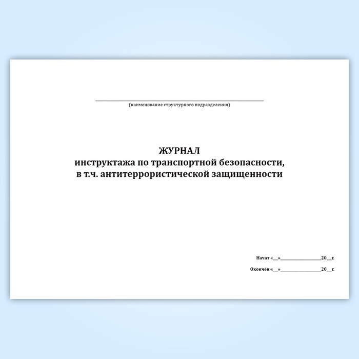 Журнал инструктажа по транспортной безопасности, в т.ч. антитеррористической защищенности в Тюмени купить