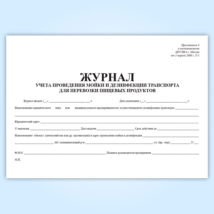 Журнал учета проведения мойки и дезинфекции транспорта для перевозки пищевых продуктов в Тюмени купить