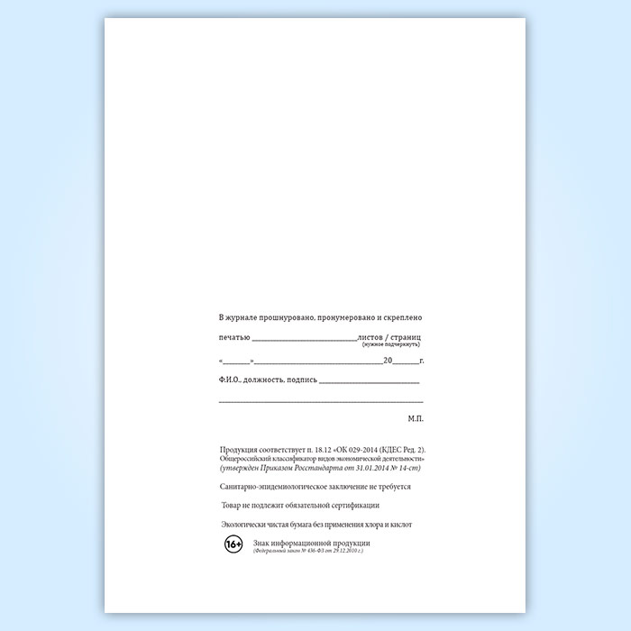 Вы получаете печатную продукцию прошнурованной и c местом для вашей печати в соответствии с действующими нормативными документами: