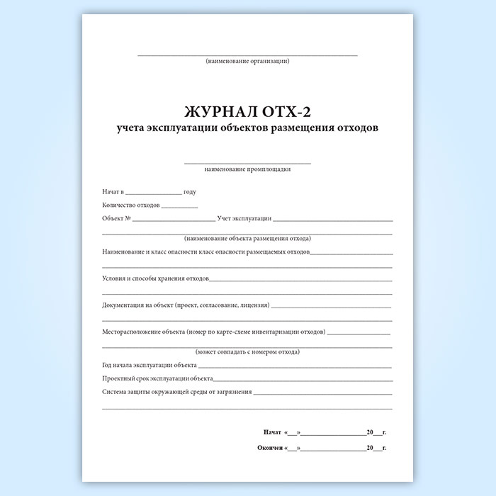 Журнал учета эксплуатации объектов размещения отходов ОТХ-2 в Тюмени купить