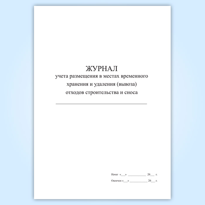 Журнал учета размещения в местах временного хранения и удаления (вывоза) отходов строительства и сноса в Тюмени купить