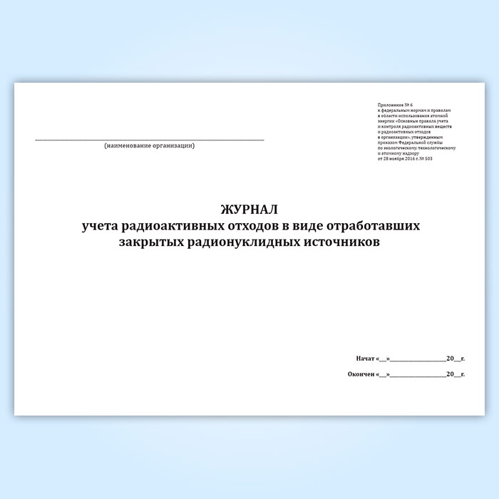 Журнал учета радиоактивных отходов в виде отработавших закрытых радионуклидных источников в Тюмени купить