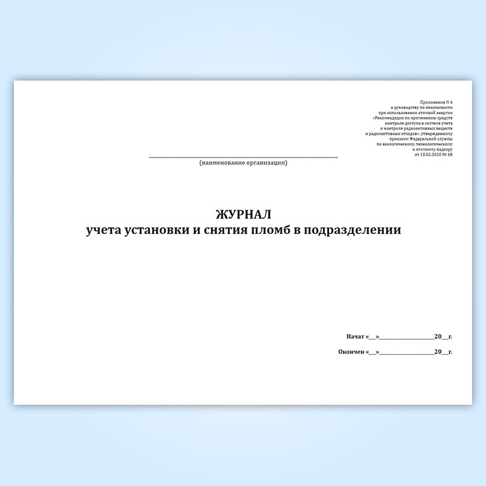 Журнал учета установки и снятия пломб в подразделении в Тюмени купить