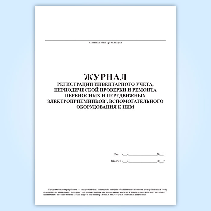 Журнал регистрации инвентарного учета, периодической проверки и ремонта переносных и передвижных электроприемников, вспомогательного оборудования к ним в Тюмени купить