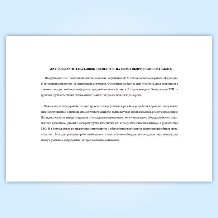 Журнал (картотека) заявок диспетчеру на вывод оборудования из работы в Тюмени купить