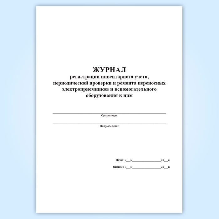 Журнал регистрации инвентарного учета, периодической проверки и ремонта переносных электроприемников и вспомогательного оборудования к ним в Тюмени купить