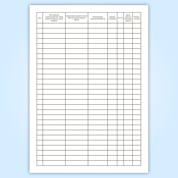 Журнал учета работ на ВЛ электропередачи напряжением 0,38-20 кВ в Тюмени купить