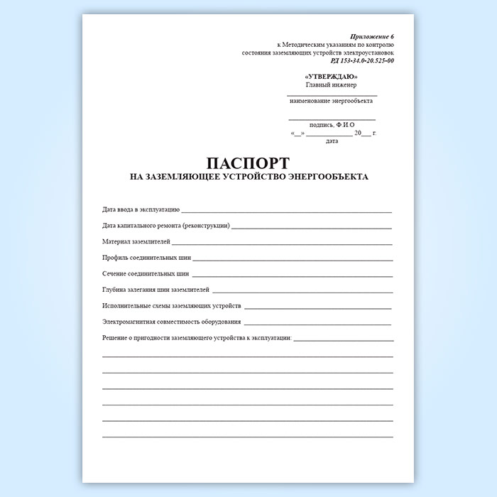 Паспорт на заземляющее устройство энергообъекта в Тюмени купить