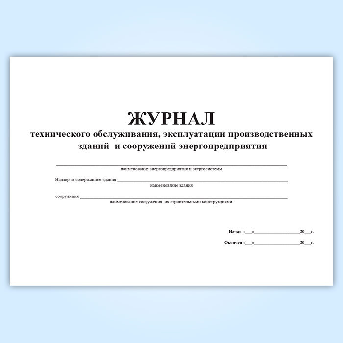 Журнал технического обслуживания, эксплуатации производственных зданий и сооружений энергопредприятия в Тюмени купить