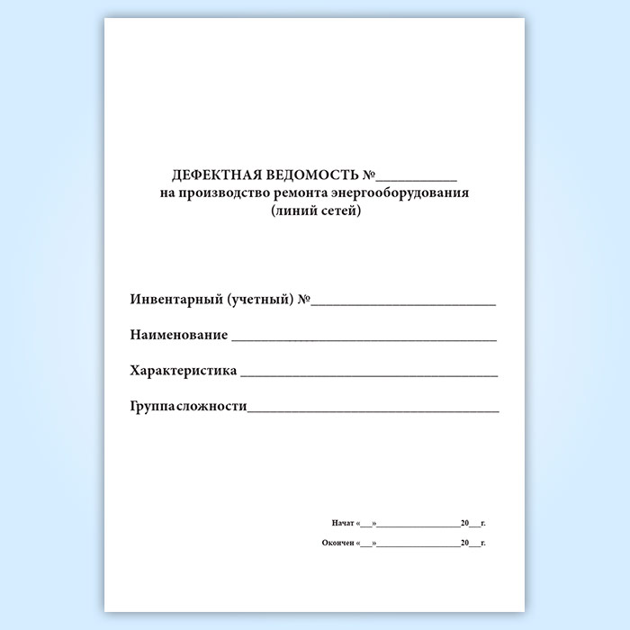 Журнал «Дефектная ведомость на производство ремонта энергооборудования (линий сетей)» в Тюмени купить