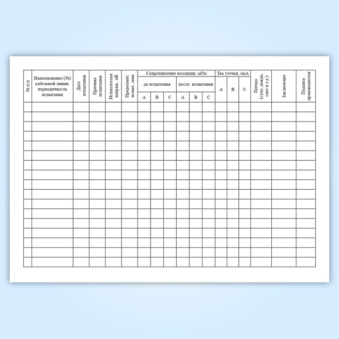Журнал испытаний кабельных линий с повышенным напряжением (форма № 20-Э) в Тюмени купить