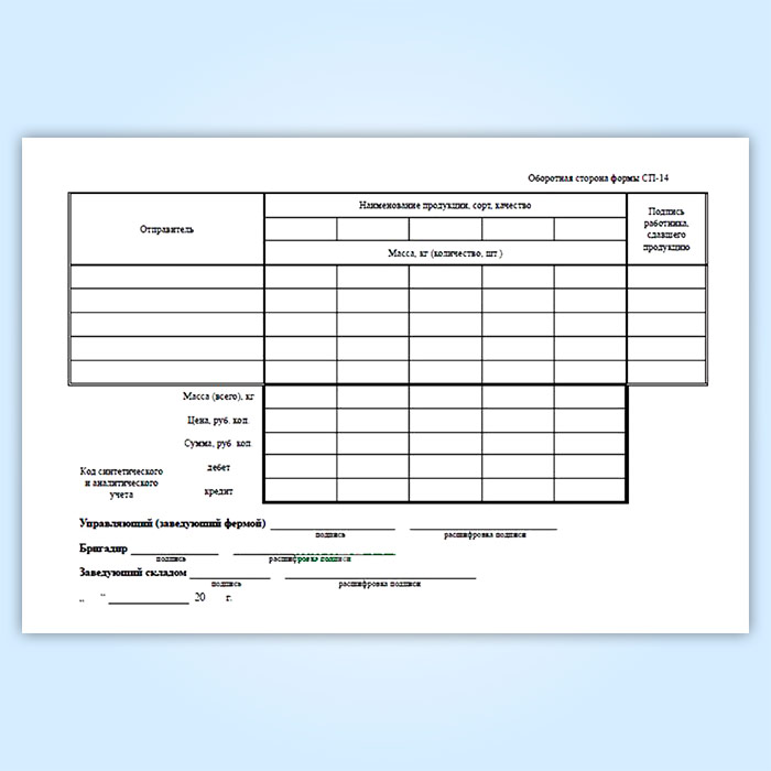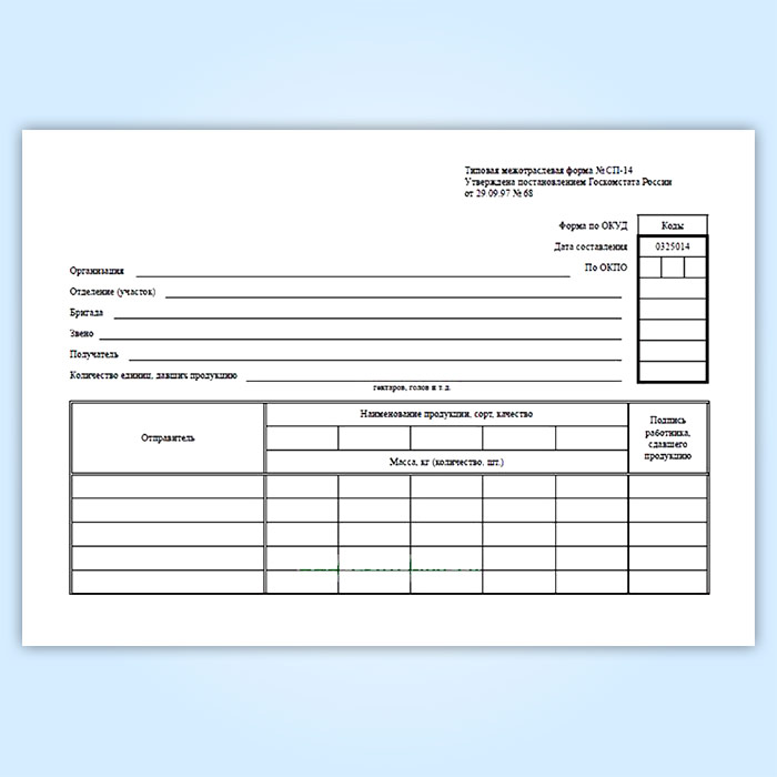 Дневник поступления сельскохозяйственной продукции (форма № СП-14) в Тюмени купить