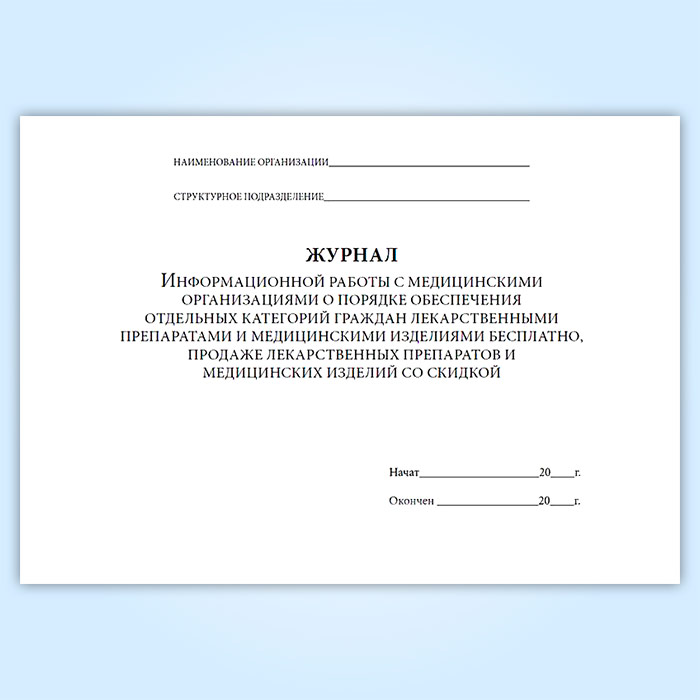 Журнал информационной работы с медицинскими организациями о порядке обеспечения отдельных категорий граждан лекарственными препаратами и медицинскими изделиями бесплатно, продаже лекарственных препаратов и медицинских изделий со скидкой в Тюмени купить
