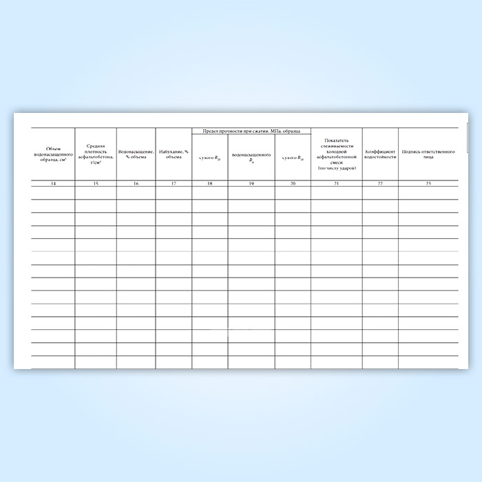 Журнал испытания проб асфальтобетонных смесей, взятых из смесителя (форма 10) в Тюмени купить