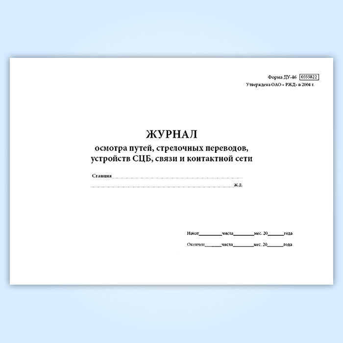 Журнал осмотра путей, стрелочных переводов, устройств СЦБ, связи и контактной сети (форма ДУ-46) в Тюмени купить