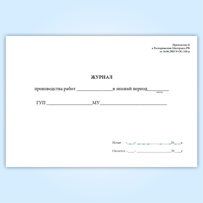 Журнал производства работ в зимний период, выполненных за время дежурства в Тюмени купить