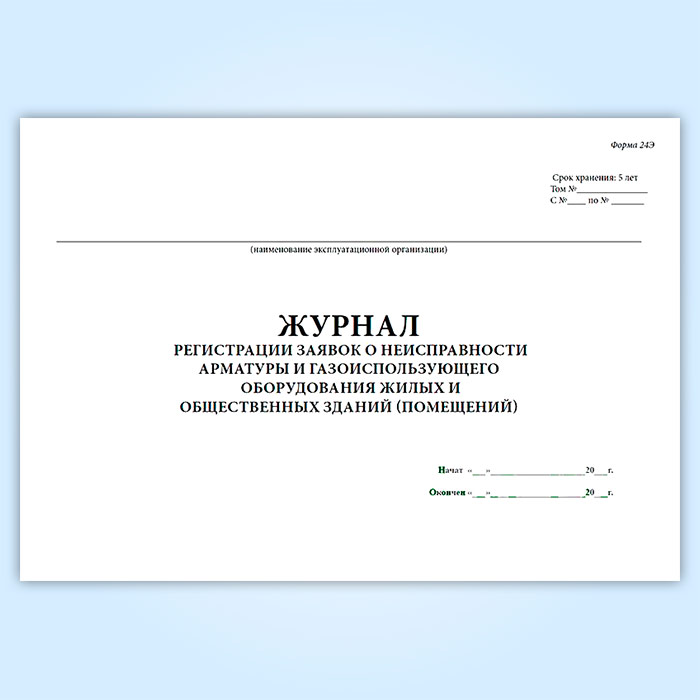 Журнал регистрации заявок о неисправности арматуры и газоиспользующего оборудования жилых и общественных зданий (помещений) (форма 24Э) в Тюмени купить
