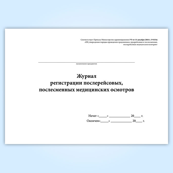Журнал регистрации послерейсовых, послесменных медицинских осмотров в Тюмени купить