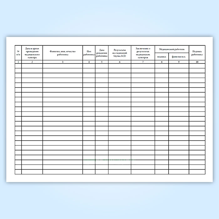 Журнал регистрации предрейсовых, предсменных медицинских осмотров (Приказ Минздрава РФ от 15 декабря 2014 г. N 835н) в Тюмени купить
