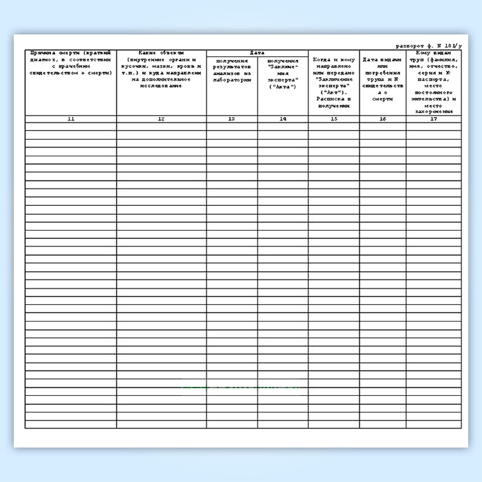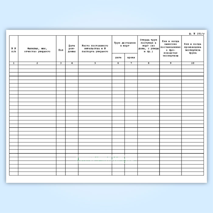 Журнал регистрации трупов в судебно-медицинском морге (форма 181у) в Тюмени купить