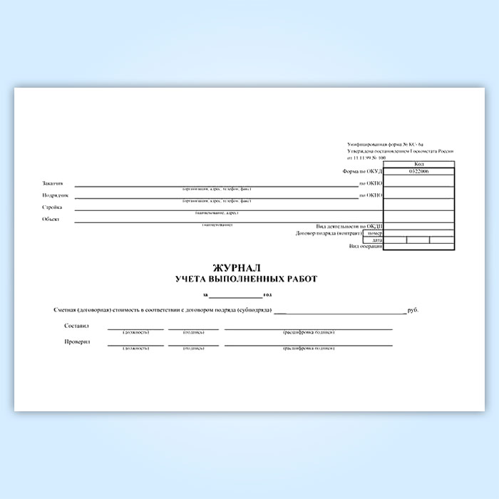 Журнал учета выполненных работ (форма КС-6а) в Тюмени купить