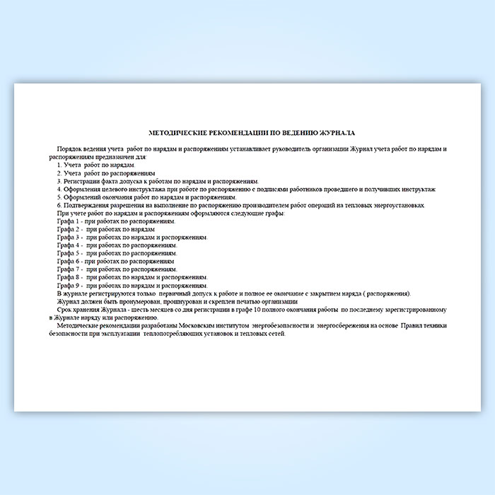 Журнал учета работ по нарядам и распоряжениям на тепловых энергоустановках в Тюмени купить