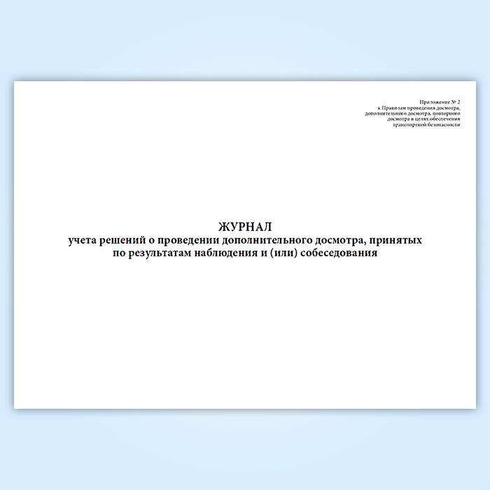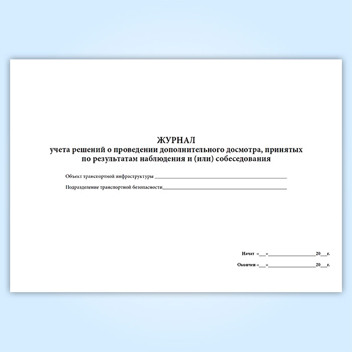 Журнал учета решений о проведении дополнительного досмотра, принятых по результатам наблюдения и (или) собеседования в Тюмени купить