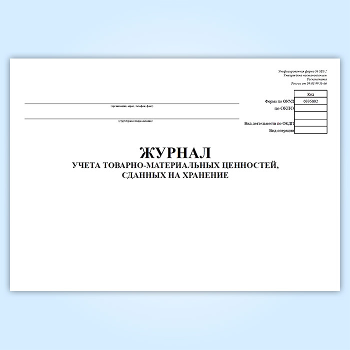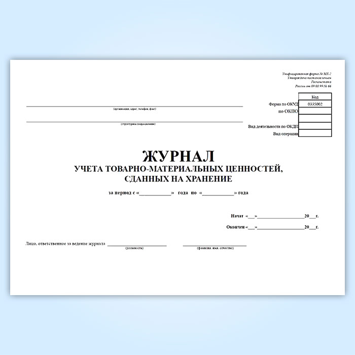 Журнал учета товарно-материальных ценностей, сданных на хранение (форма № МХ-2) в Тюмени купить