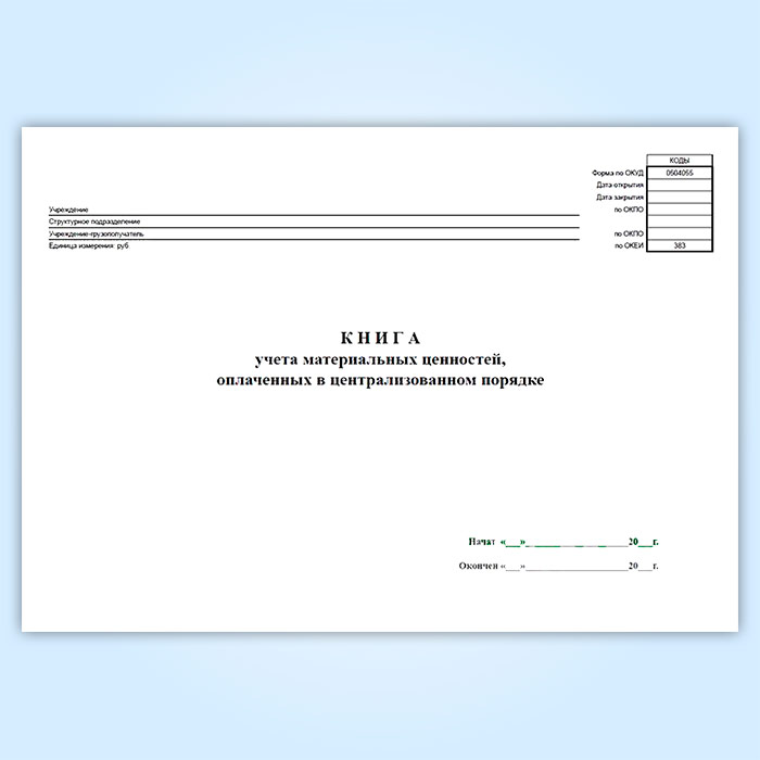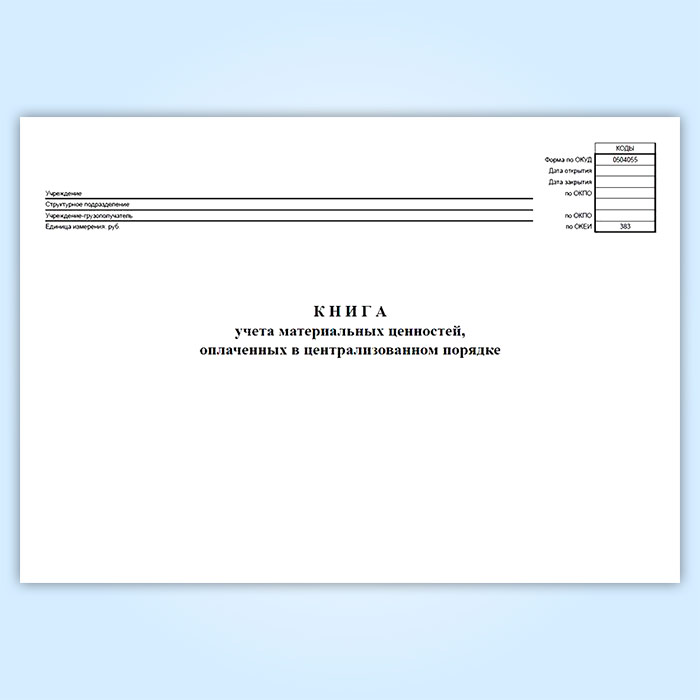 Книга учета материальных ценностей, оплаченных в централизованном порядке (код формы 0504055) в Тюмени купить
