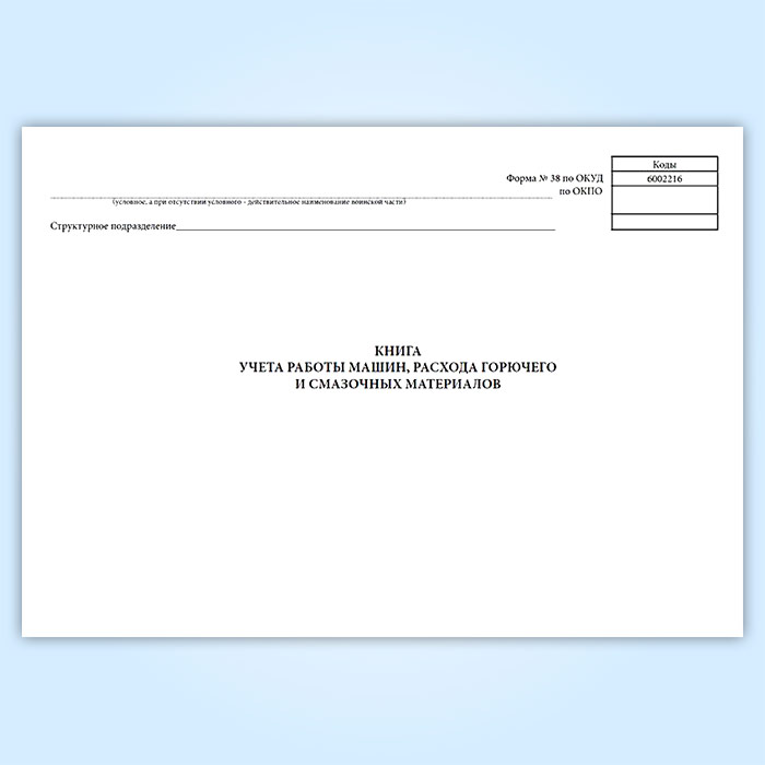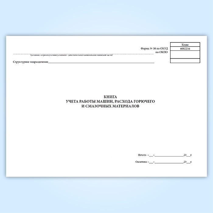 Книга учета работы машин, расхода горючего и смазочных материалов (форма 38, ОКУД 6002216) в Тюмени купить