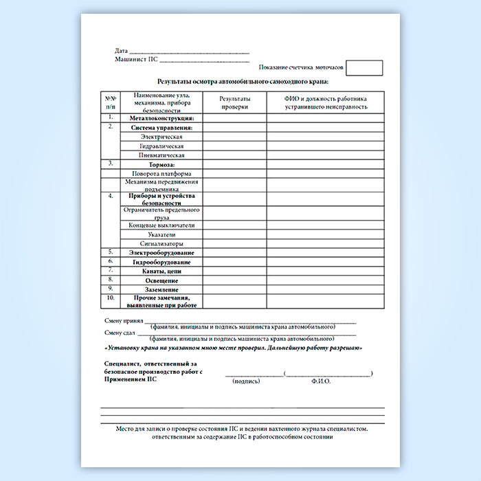 Вахтенный журнал машиниста автомобильного стрелового крана в Тюмени купить