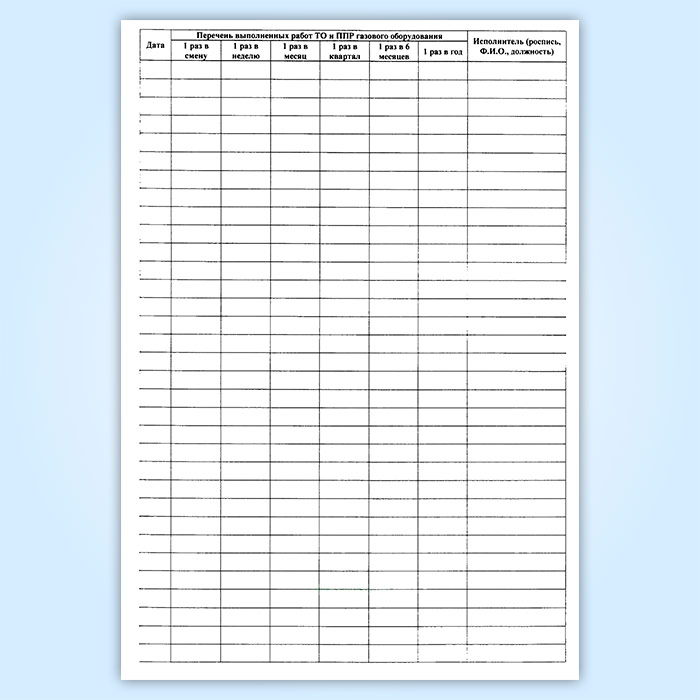 Журнал выполненных работ по техническому обслуживанию и ППР газового оборудования систем газоснабжения ГРС и ДО в Тюмени купить
