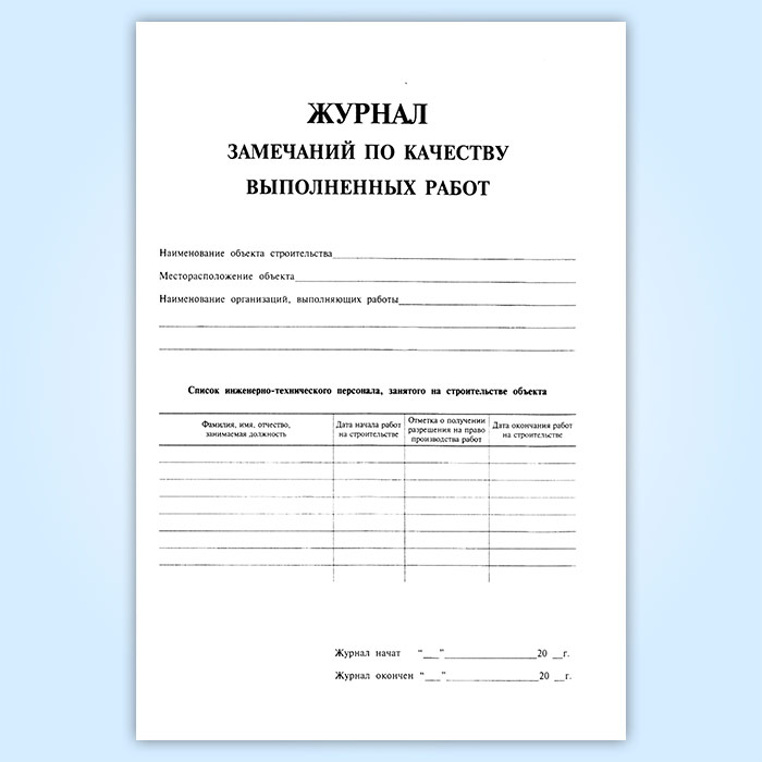 Журнал замечаний по качеству выполненных работ в Тюмени купить