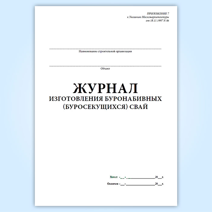 Журнал изготовления буронабивных (буросекущихся) свай в Тюмени купить