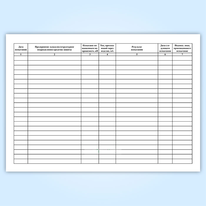 Журнал испытаний средств защиты из диэлектрической резины и полимерных материалов в Тюмени купить