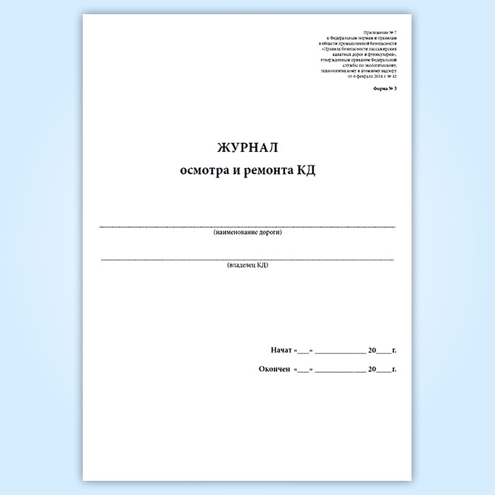 Журнал осмотра и ремонта канатной дороги. Натяжной канат к несущему канату (форма № 3) в Тюмени купить