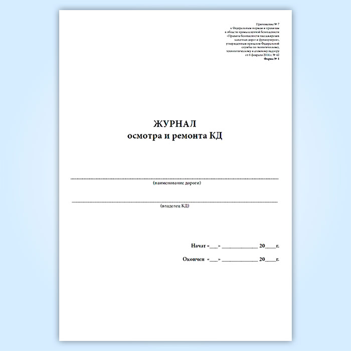 Журнал осмотра и ремонта канатной дороги. Несущий канат (форма № 1) в Тюмени купить