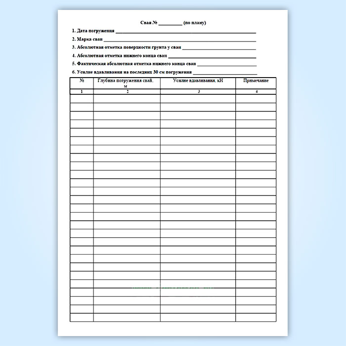 Журнал погружения вдавливаемых свай в Тюмени купить
