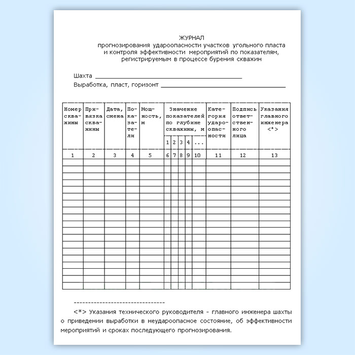 Журнал прогнозирования удароопасности участков угольного пласта и контроля эффективности мероприятий по показателям, регистрируемым в процессе бурения скважин в Тюмени купить