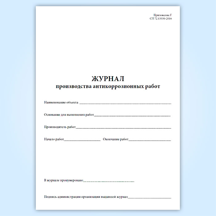 Журнал производства антикоррозионных работ в Тюмени купить